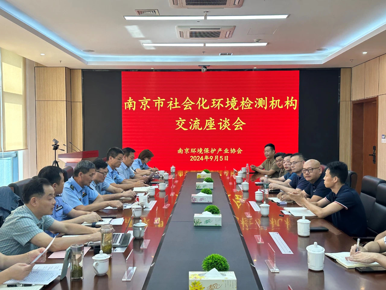 9月5日下午,在南京市生态环境监测监控中心会议室召开了南京社会化环境检测机构交流座谈会。会议由南京环境保护产业协会组织,南京市生态环境局监测执法处、市市场监管局认可与检验检测监督管理处、市公安局食药环侦支队、江苏省南京环境监测中心、市生态环境监测监控中心、市生态环境综合行政执法局等各部门主要领导出席本次会议。会议由协会副会长兼秘书长张建宁主持,20家环境检测实验室单位代表参加。