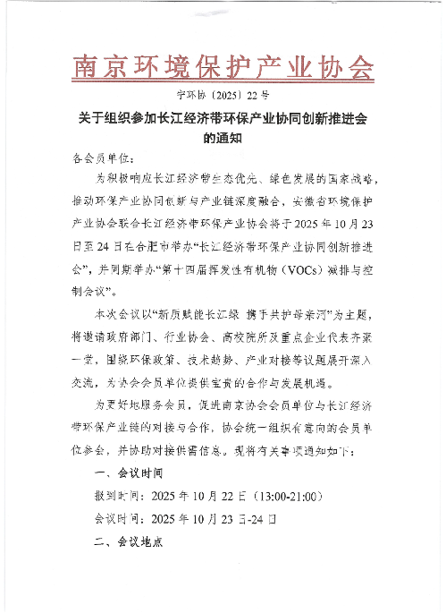 【协会通知】关于组织参加长江经济带环保产业协同创新推进会的通知