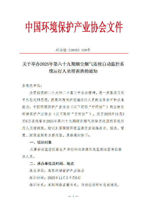 【培训通知】关于举办2025年第六十九期烟尘烟气连续自动监控系统运行人员培训班的通知