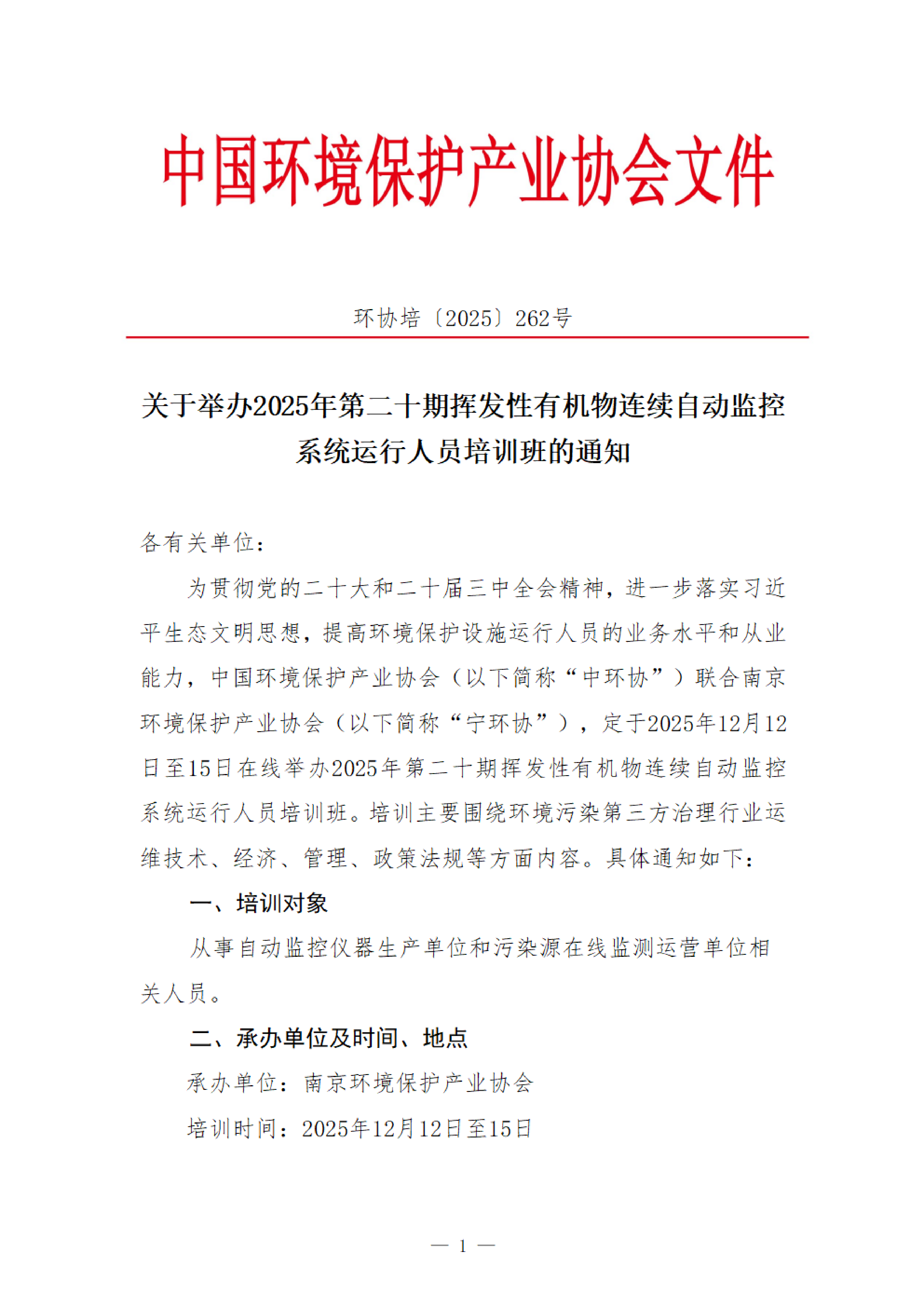 【培训通知】关于举办2025年第二十期挥发性有机物连续自动监控 系统运行人员培训班的通知