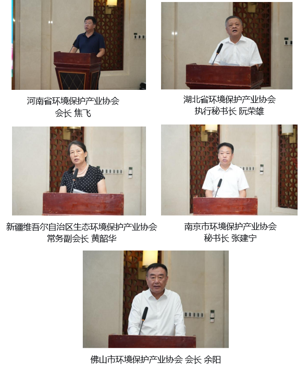 河南省环境保护产业协会会长焦飞、湖北省环境保护产业协会执行秘书长阮荣雄、新疆维吾尔自治区生态环境保护产业协会常务副会长黄韶华、南京市环境保护产业协会秘书长张建宁、佛山市环境保护产业协会会长余阳等五位代表先后做典型发言,分享了各级协会在政治引领、机制创新、产业协同、绿色发展等方面的实践与探索经验。