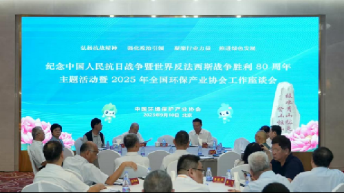 2025年9月10日,全国各级环保产业协会“纪念中国人民抗日战争暨世界反法西斯战争胜利80周年”联学联建主题党日活动暨“弘扬抗战精神、强化政治引领、凝聚行业力量、推进绿色发展协会工作座谈会”在北京举办。