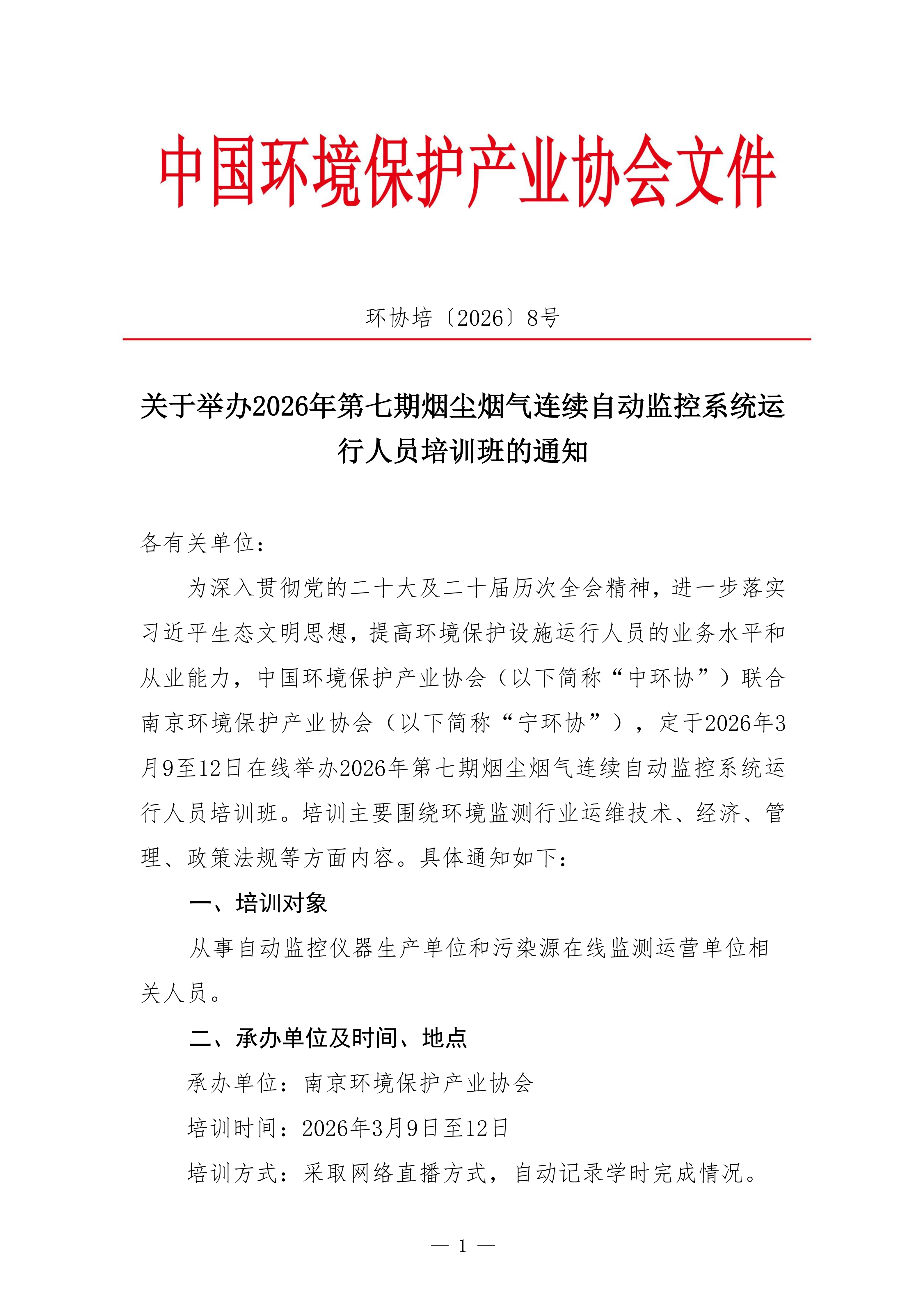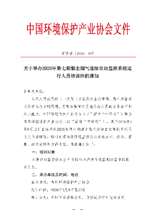 【培训通知】关于举办2026年第七期烟尘烟气连续自动监控系统运 行人员培训班的通知