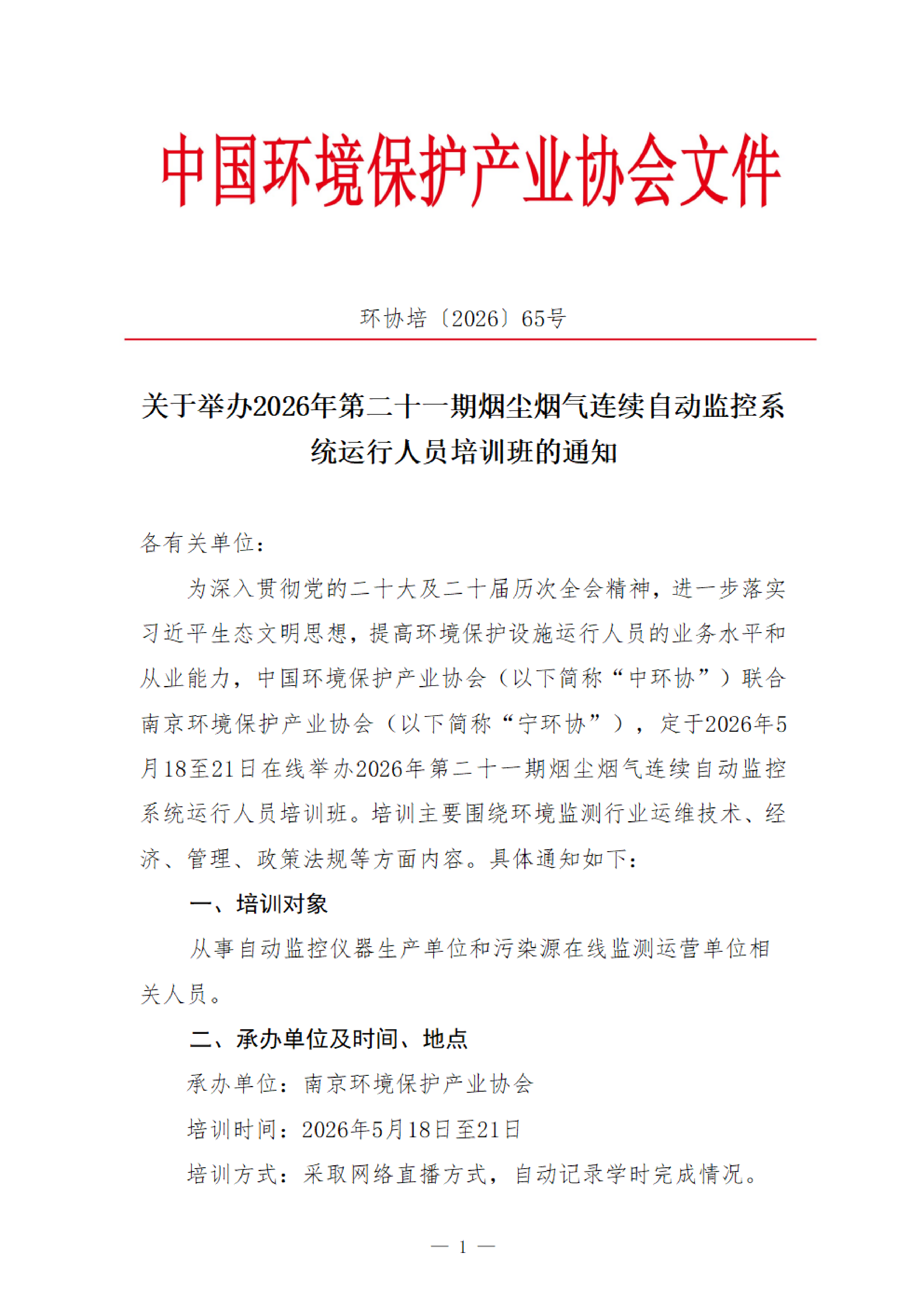 【培训通知】关于举办2026年第二十一期烟尘烟气连续自动监控系统运行人员培训班的通知